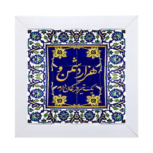 تابلو کاشی شعر مدل هزار دشمن و یک تیر در کمان دارم